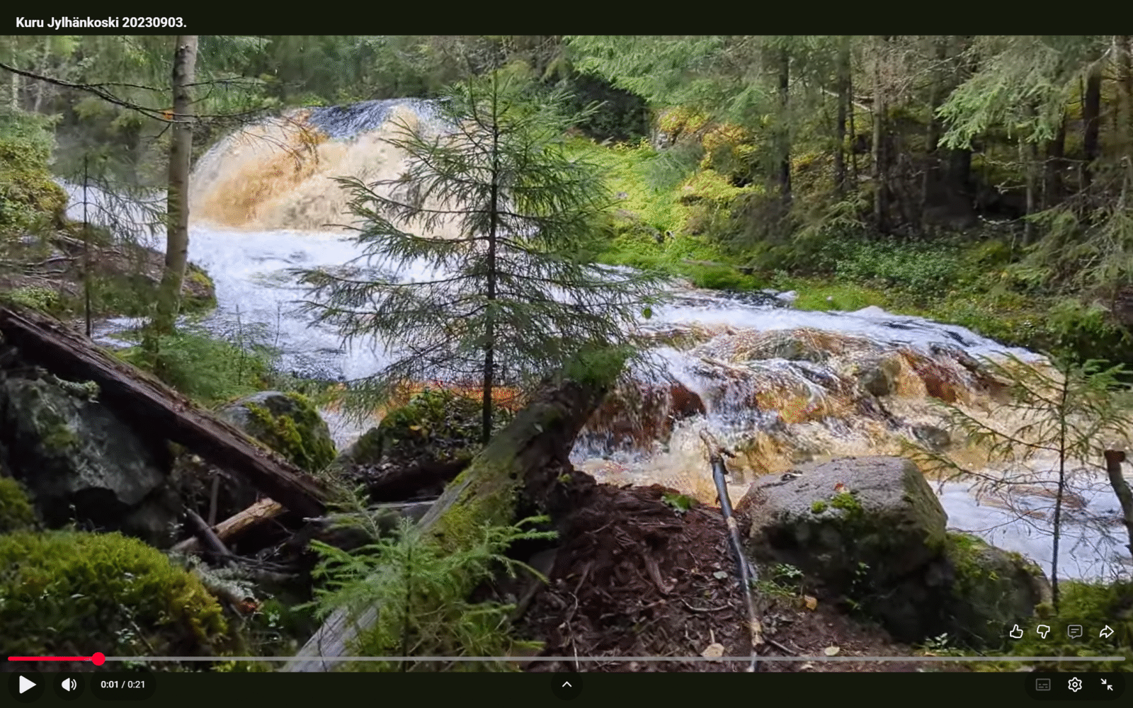 Kosketkin kuohuu nyt kovemmin kuin kevättulvien aikaan! Videolla Jylhänkoski Kurun puolella, reilu 3km Kurusta tulevasta Pirkan Taival-reitistä, hyväkuntoista metsätietä. Koskelle kulkee tieltä kaksi polkua jotka on helppo löytää vaikka viitoituksia ei ole (tai olihan siellä toisen polun alussa jonkun saapas kepin nokassa…). Kyllä kannattaa käydä tuo pisto sinne tekemässä. Siinä matkalla on Kelkkakerhon Susitörmän kota.